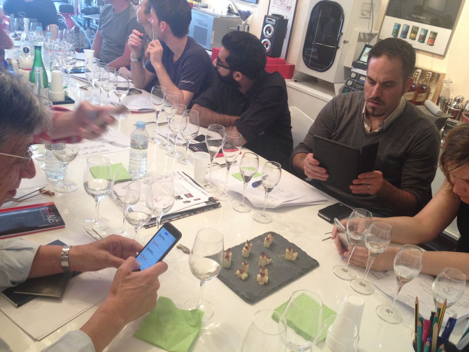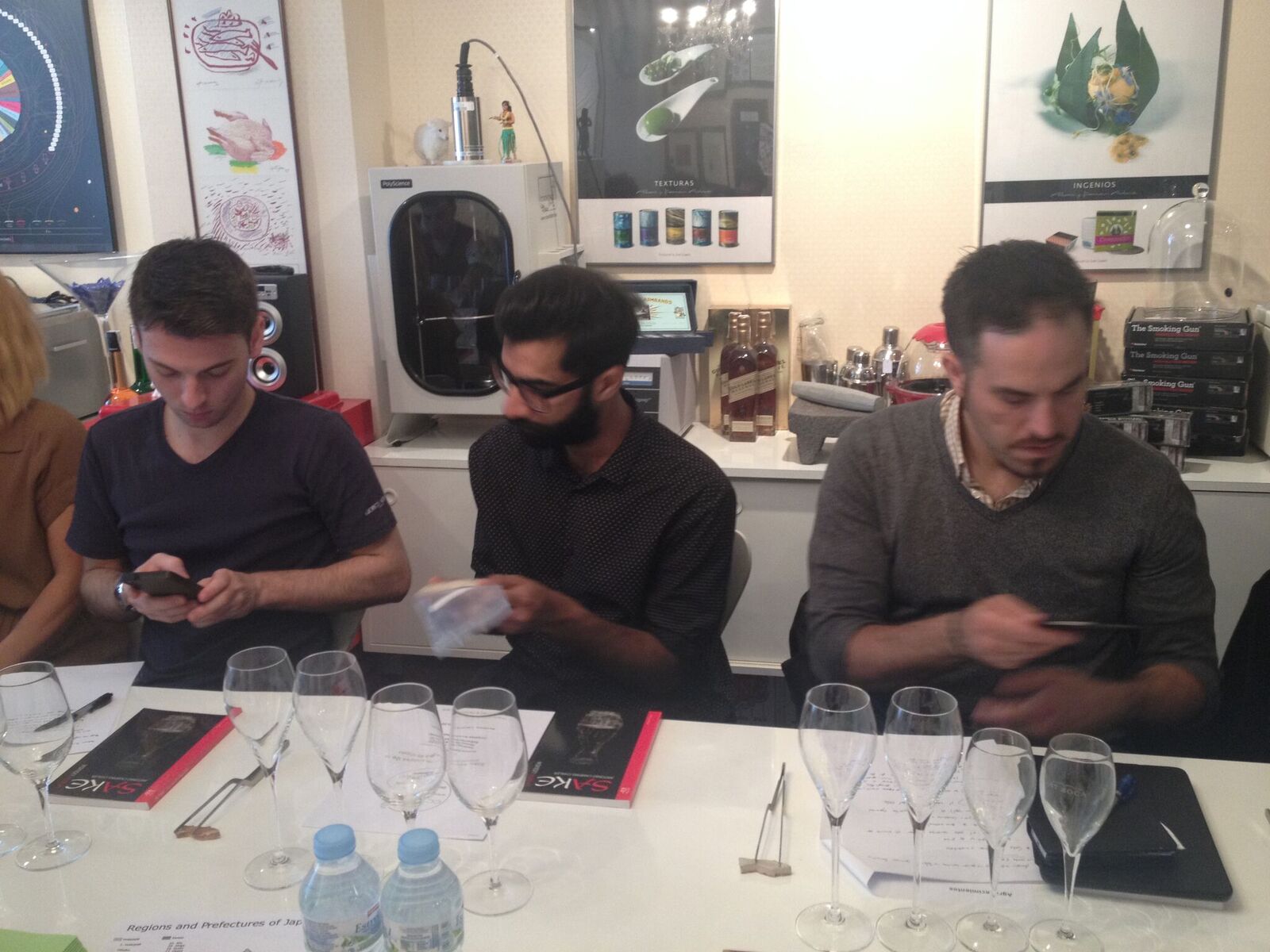 Todo ello de la mano de Antonio Campins Chaler, autor de «Sake. La seda líquida» y uno de los más profundos conocedores de esta bebida japonesa. Además nos acompañaron «Cooking in Motion» (Sebastián Mazzola y Sussie Villarico), quienes, tras su paso por el restaurante «Pakta» de Barcelona, han recorrido el mundo realizando pop-ups y asesorando los mejores chefs y restaurantes. Sussie obtuvo hace poco su título Sommelier en sake por el WSET de Londres. La enorme versatilidad del sake en la coctelería quedó demostrada gracias al buen hacer de la bartender barcelonesa Cristina Bruno Giménez (Ajoblanco y Enter-sake Ibiza).